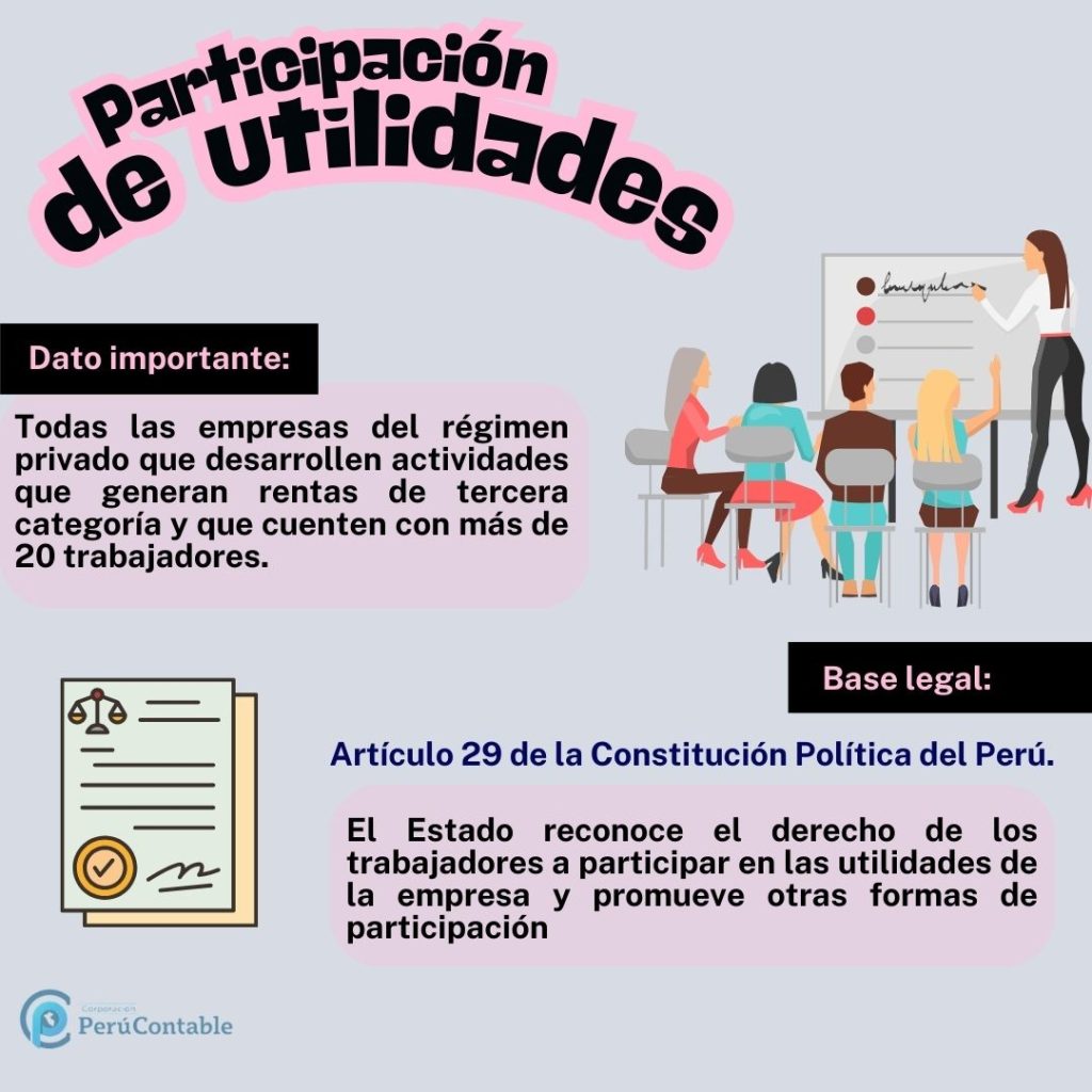 ¿Qué es la participación de utilidades? Es el derecho de los trabajadores que están bajo el régimen laboral de la actividad privada, además, tienen derecho a participar en las utilidades de la empresa empleadora, a través de la distribución de un porcentaje de la renta anual antes de impuestos por parte de los impuestos. En este articulo, conocerás mas de la participación de utilidades y su contabilización.