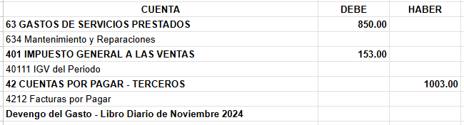 - En este caso, el gasto corresponde a noviembre de 2024, ya que el servicio de mantenimiento se prestó en ese periodo.