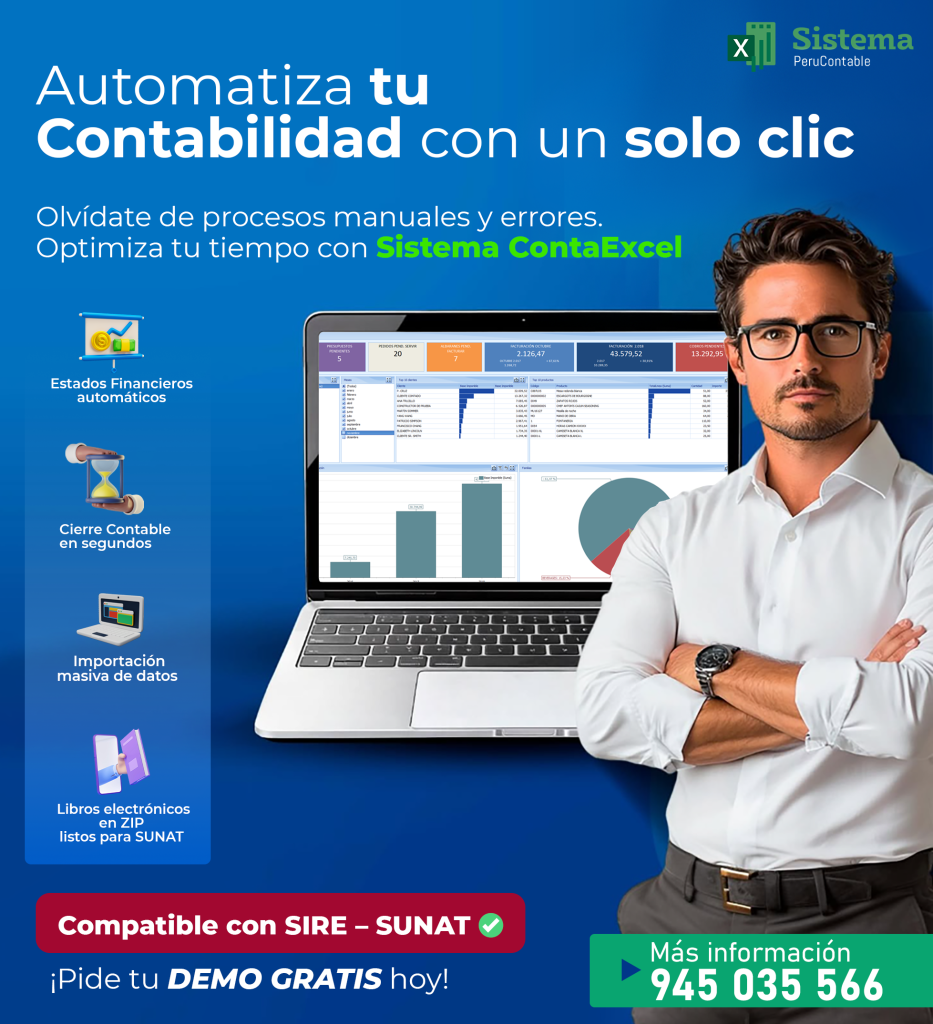 ContaExcel es una herramienta contable creada para optimizar y facilitar la gestión financiera de tu empresa. Más de 500 especialistas confían en su plataforma intuitiva y sus amplias funcionalidades. Con este software, puedes automatizar asientos contables, generar estados financieros, realizar cierres de manera automática, importar datos para SIRE y consultar RUC, DNI y tipos de cambio con rapidez. Además, ofrece un año de soporte técnico, actualizaciones constantes y capacitaciones. Potencia la eficiencia contable de tu negocio con ContaExcel.