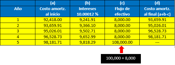 Cronograma del costo amortizado