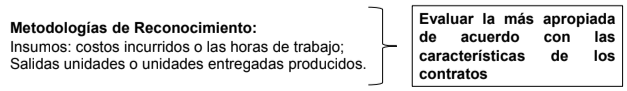 La elección del método depende de las características del contrato y de la naturaleza del bien o servicio que se está transfiriendo.