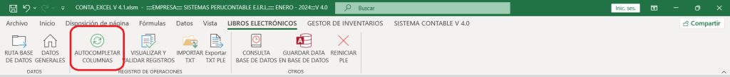 En la pestaña de LIBROS ELECTRÓNICOS está la opción AUTOCOMPLETAR COLUMNAS, es ideal para agilizar el llenado de datos cuando usamos el sistema como aplicativo. De esta manera, podrás asegurarte de que tu sistema cumple con todos los requisitos mínimos para funcionar correctamente.