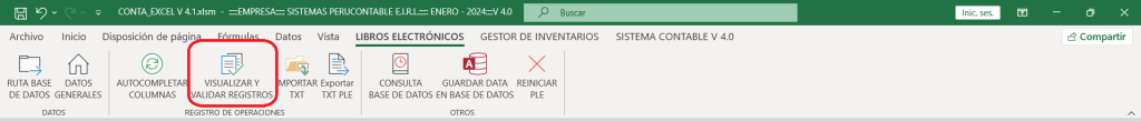 Con la opción VISUALIZAR Y VALIDAR REGISTROS, podemos revisar nuestros libros electrónicos para asegurarnos de que estén correctamente llenados y cumplan con los requisitos establecidos.