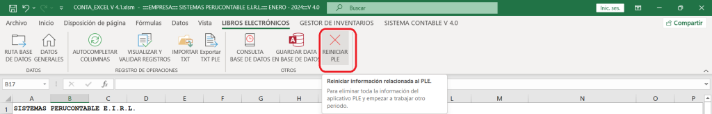 Finalmente con la función REINICIAR PLE, se borrará toda la data almacenada en los libros electrónicos. Es importante tener mucho cuidado al utilizar esta función, ya que el proceso es irreversible.