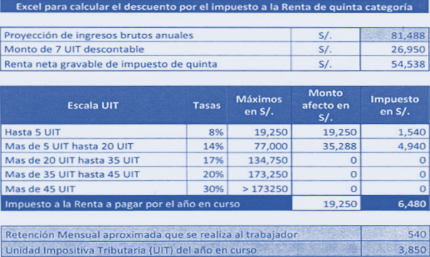 Tablas para cálculo de renta de quinta categoría (según ley n° 30296)