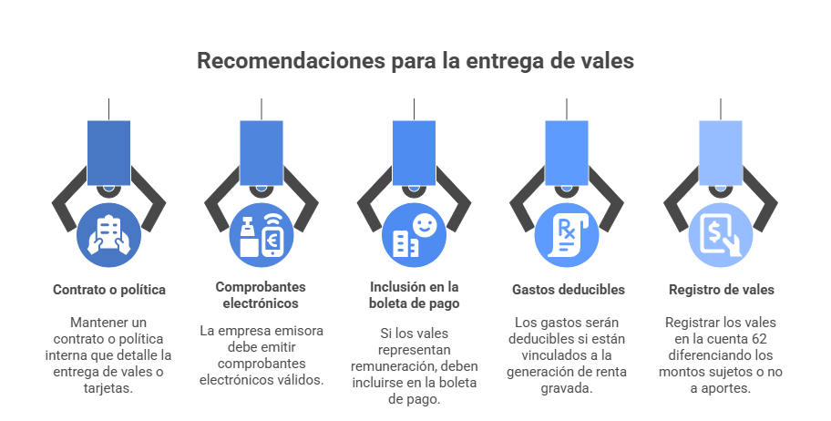 • Mantener contrato o política interna que detalle la entrega de vales o tarjetas.
