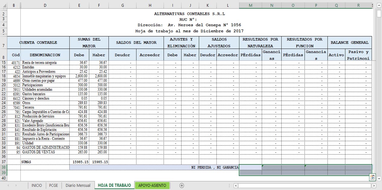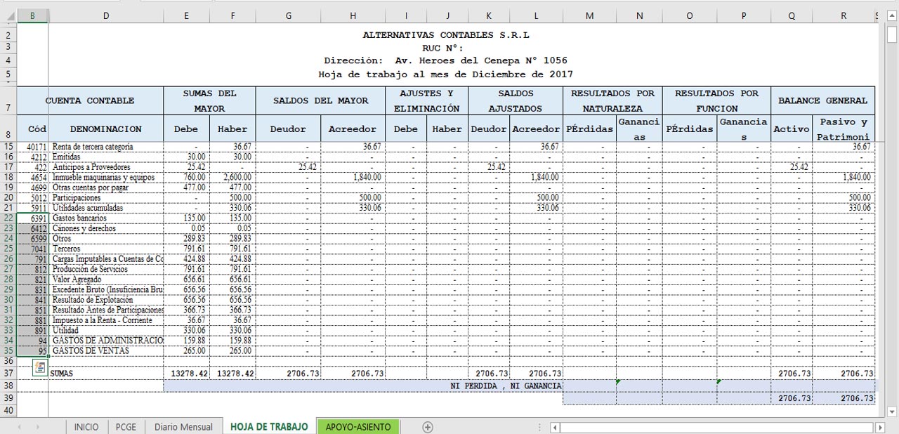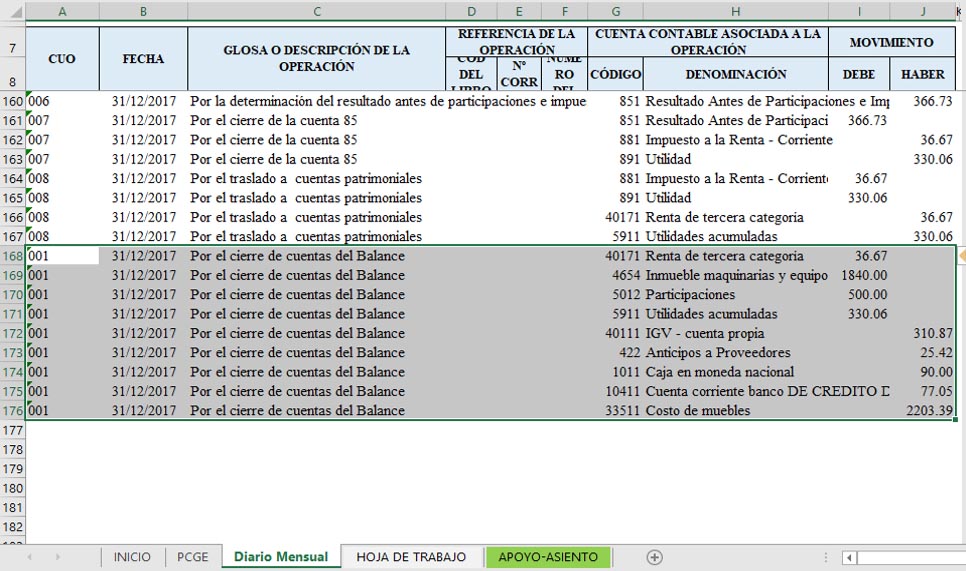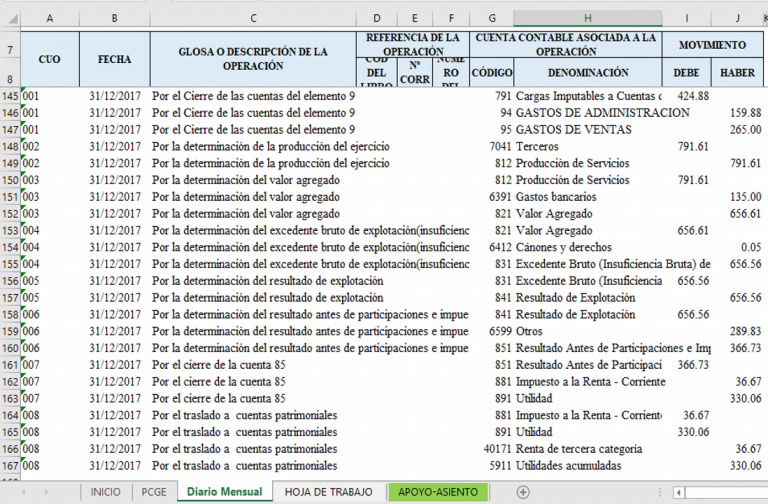 Hasta acá solo hemos generado la hoja de trabajo y esto es porque a partir de acá viene el proceso de cierre y éste toma la información de la hoja de trabajo para ejecutar todo el proceso de cierre por lo tanto si hasta acá todo está bien es muy probable que el cierre sea el correcto; entonces esta demás indicar que tengamos especial cuidado en generar la hoja de trabajo.