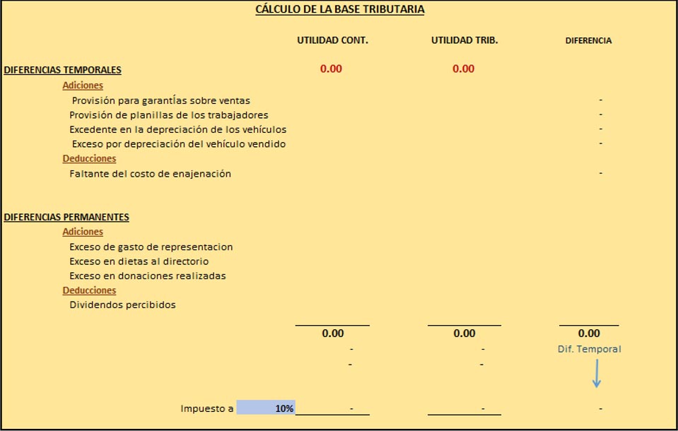 En esta hoja podemos agregar los importes totales de las diferencias temporales y permanentes que tengamos en el periodo todo esto con la finalidad de que el sistema los considere para los cálculos del impuesto a la renta y los asientos de cierre correspondientes.