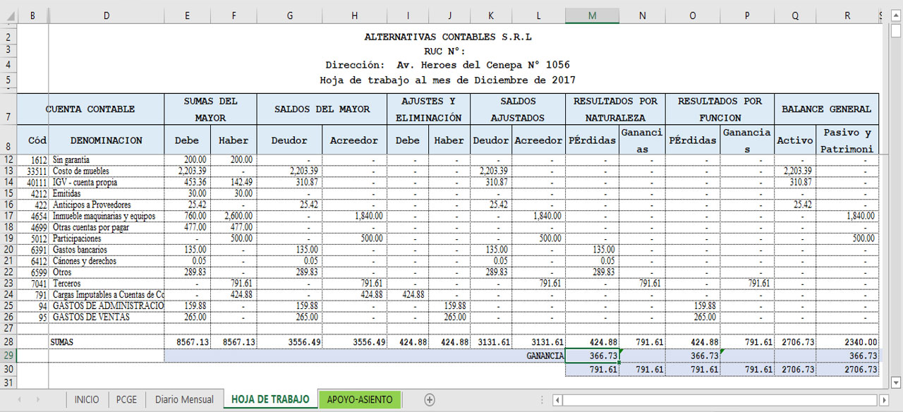 Hoja de trabajo: es la estructura donde el sistema procesar el libro diario y nos mostrara el siguiente formato.