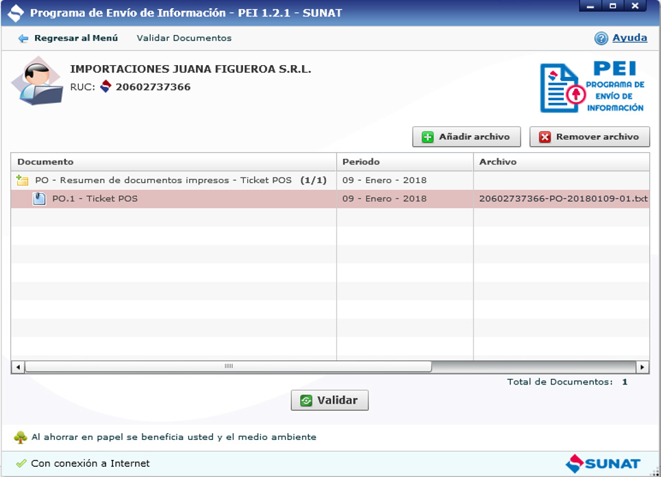 PASO 5: Validación y envío a través del PEI – SUNAT.