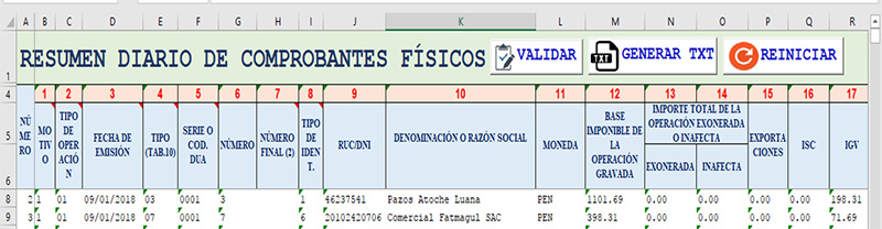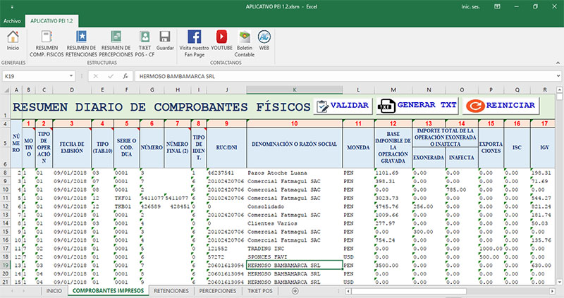 Macro excel para validar y generar los archivos de importación al PEI y enviarlos a SUNAT. (Contingencias y Ticket POS)