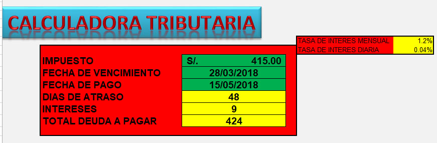 calculadora tributaria intereses impuestos
