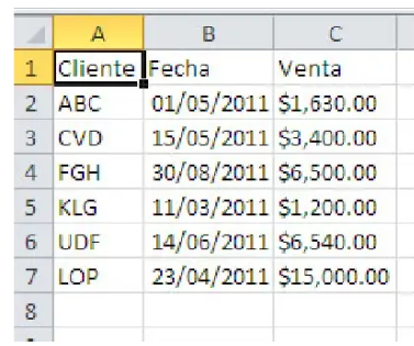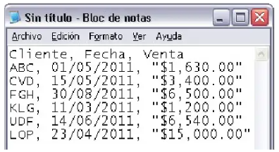 A continuación, se muestra un ejemplo de un archivo CSV: