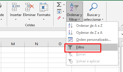 También puedes utilizar el ratón para hacer la selección del rango. Posteriormente agregaremos filtros a los datos con el comando Inicio > Ordenar y filtrar > Filtro.