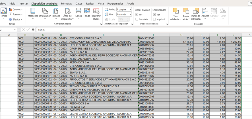 • Después de esto, todas las columnas de tu hoja de cálculo se mostrarán en una página con la información completa y sin cortes. Sin embargo, es posible que las filas abarquen más de una página.