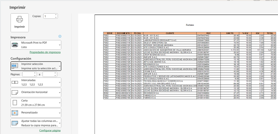 • Seguidamente, selecciona el rango de datos a imprimir.