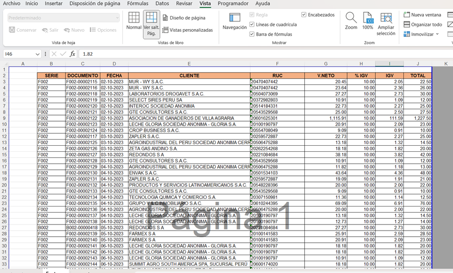 • En primer lugar, seleccionar en la opción “Vista» y luego seleccionar “ver salto de página”.