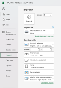 • En “Configuración” despliega el listado de opciones y selecciona “Imprimir selección”.
