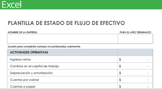 Plantilla de estado de flujo de caja