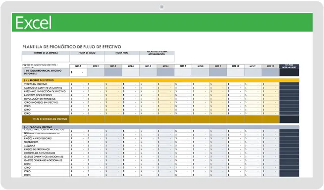 - Monitoreo Continuo: El uso regular de una plantilla de previsión de flujo de caja permite actualizar las proyecciones en función de las variaciones en los ingresos y gastos, ayudando a mantener un control constante.