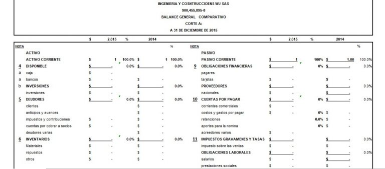 Plantilla excel: Estados financieros contiene las siguientes hojas: