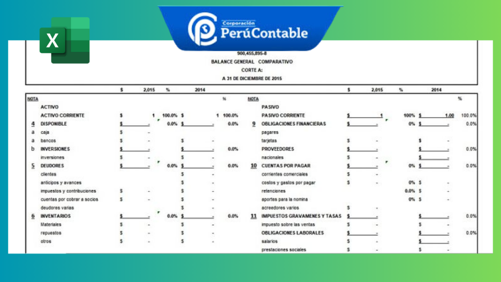 Plantilla excel: Estados financieros contiene las siguientes hojas: