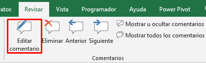 - Ir a la ficha Revisar y dentro del grupo Comentarios pulsar el botón Editar Comentario.