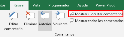 Mostrar u ocultar comentarios en la hoja de cálculo