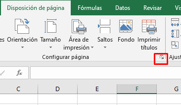 En la ficha Diseño de página, en el grupo Configurar página, hacemos clic en el iniciador para abrir el cuadro de diálogo Configurar página.