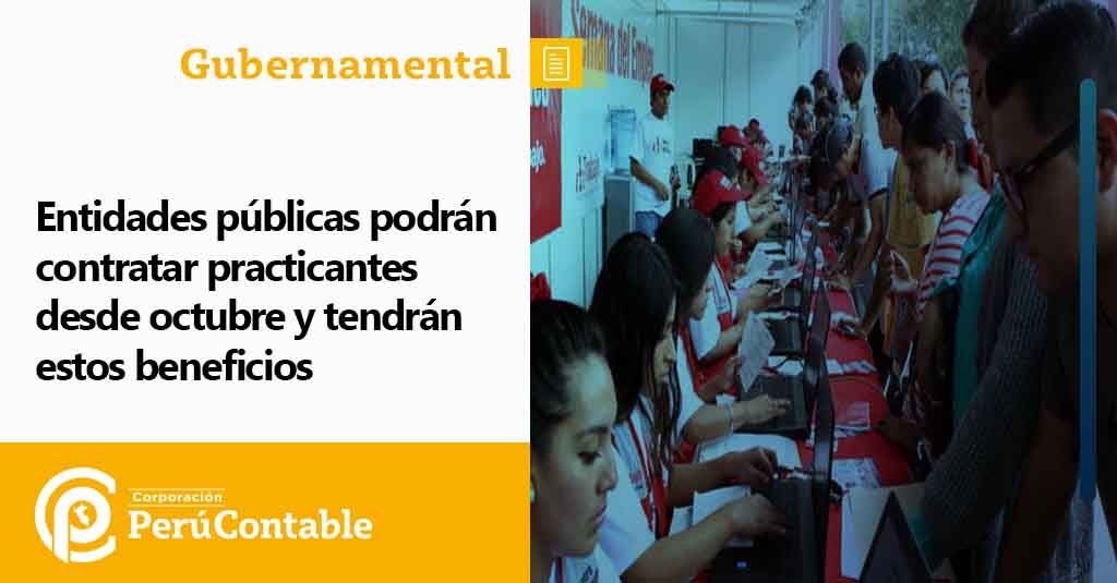 Las entidades del sector público podrán contratar practicantes a partir de octubre de este año con el objetivo de promover el empleo juvenil, según la aprobación del reglamento de modalidades formativas publicado hoy en el diario El Peruano.
