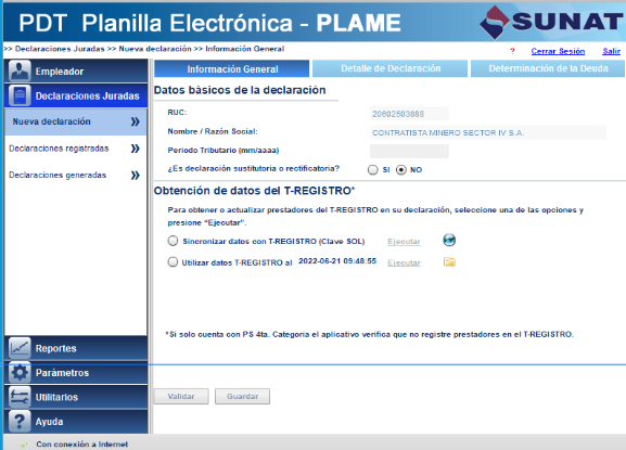 - A continuación entraremos al programa PDT-PLAME a realizar una simulación del registro de una planilla de trabajadores en T-Registro.