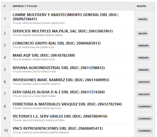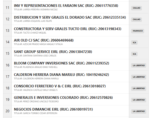 En el caso de Ica, figuran AIR OLD CJ S.A.C., con domicilio fiscal en Nasca, y SANT GROUP SERVICE E.I.R.L., registrada en Pisco. Ambas aparecen como emisoras de comprobantes observados dentro del padrón publicado por la Sunat.