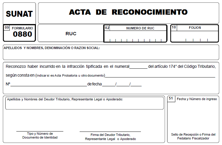 El Acta de reconocimiento se tendrá por presentada (solo para el numeral 2 y 3):