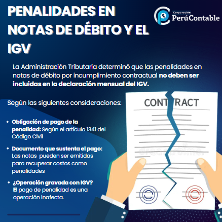 A través del presente informe, la Administración Tributaria concluyó en que los importes de las penalidades contenidas en las notas de débito que el adquirente o usuario aplica a su proveedor por incumplimiento contractual no deberá consignarse en la declaración jurada mensual del IGV.