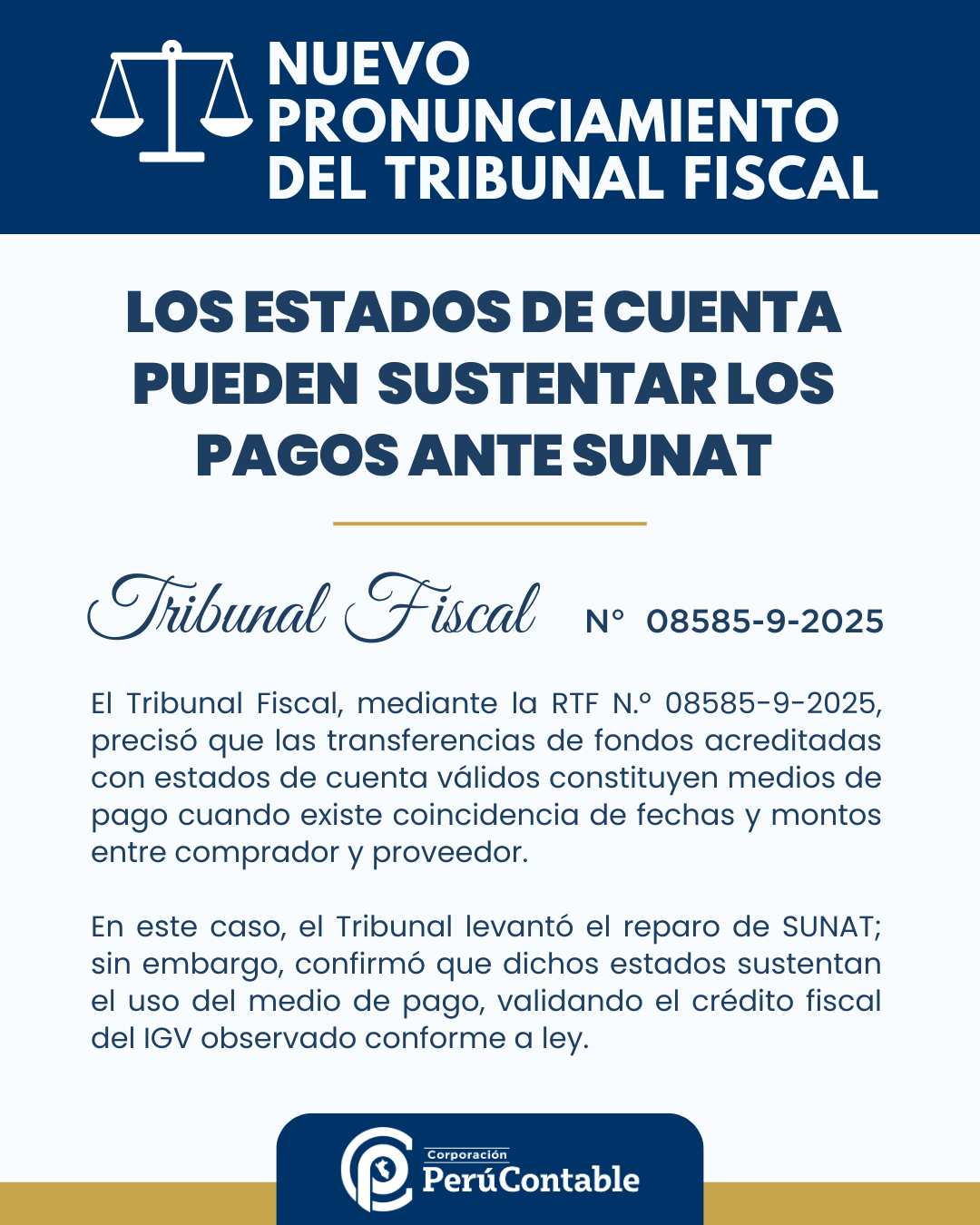 En la Resolución N.º 08585-9-2025, el Tribunal Fiscal abordó un caso relacionado con la acreditación de transferencias mediante estados de cuenta como medio de sustento para el uso de medios de pago en operaciones comerciales. El contribuyente había solicitado la aceptación de estos documentos como prueba de que las transferencias realizadas a sus proveedores cumplían con los requisitos legales para ser consideradas válidas para efectos fiscales.