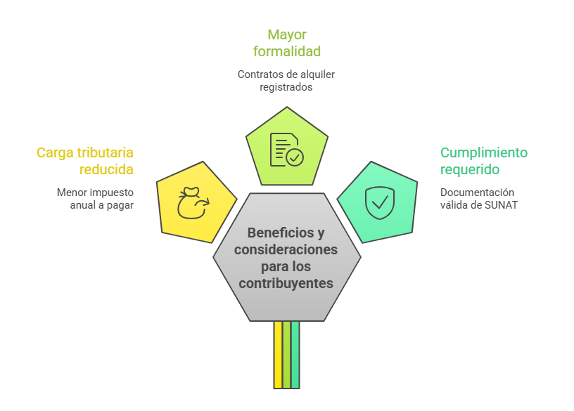 Asimismo, esta modificación se inscribe dentro de una serie de ajustes tributarios orientados a modernizar y hacer más equitativo el régimen de rentas de primera categoría, reflejando la realidad económica de quienes perciben ingresos por alquileres, y promoviendo al mismo tiempo la formalización en la emisión de recibos o comprobantes que respalden dichos ingresos.