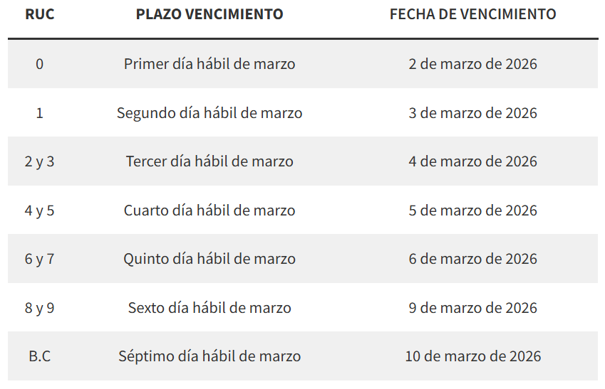 CRONOGRAMA DE VENCIMIENTOS DAOT 2026