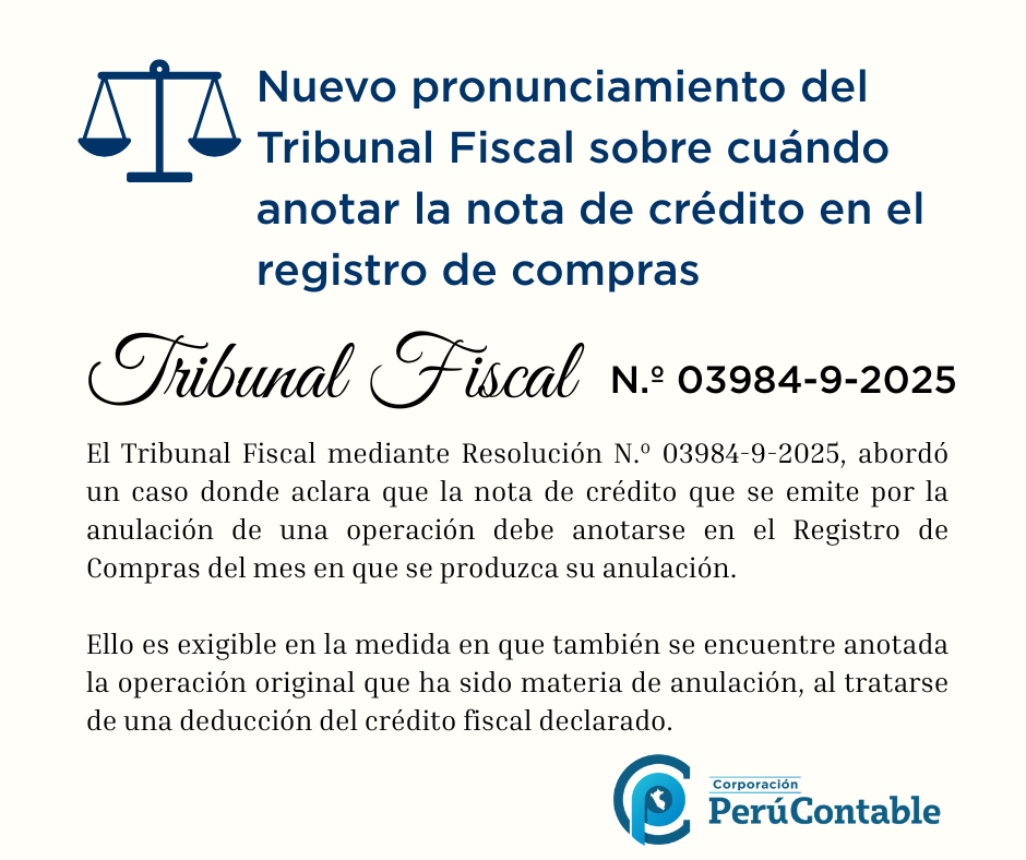 La RTF 03984-9-2025 reafirma que la oportunidad de registro de la nota de crédito está vinculada al momento de la anulación de la operación, fortaleciendo la correcta aplicación de la normativa contable y tributaria.