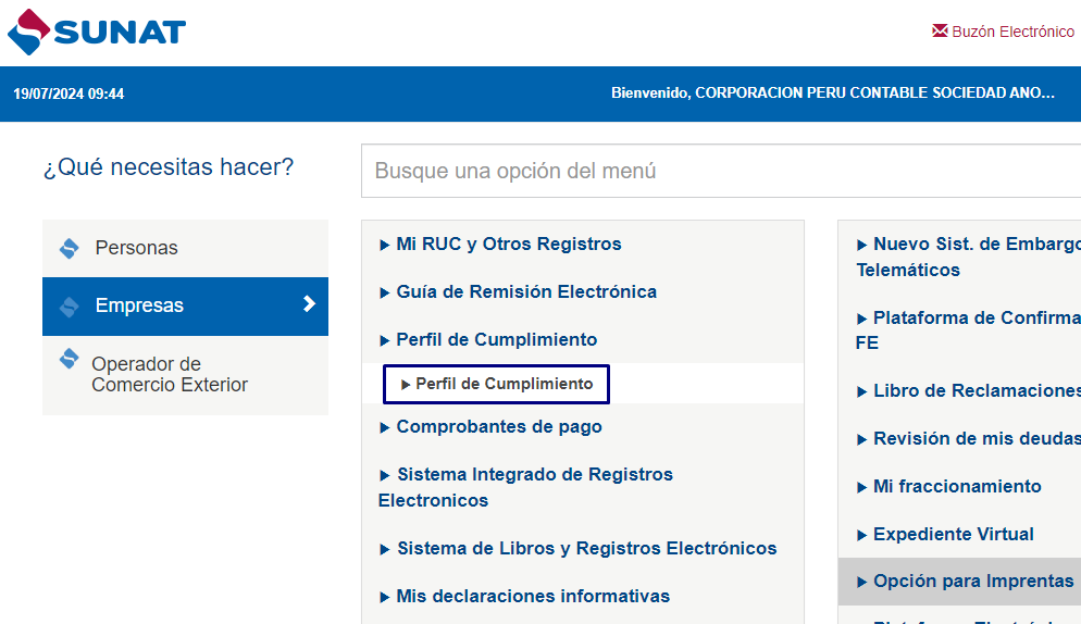 El perfil de cumplimiento de la SUNAT (Superintendencia Nacional de Aduanas y de Administración Tributaria) en Perú clasifica a los contribuyentes en diferentes categorías.
